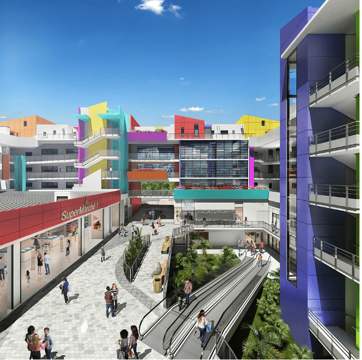 Elle se présente de 2 îlots EST et OUEST avec commerces, sa conception offre des vues multiples sur océan, montagne et patio tropical et se situe à seulement 250 mètres de la mer et à 900 mètres de l’hôtel de ville